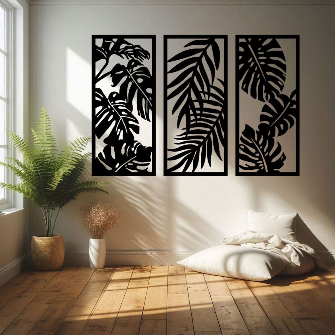 Tryptyk ze wzorem monstery wprowadzi do Twojego wnętrza odrobinę natury. Tryptyk to unikalny zestaw trzech obrazów, które tworzą spójną całość. Jest to doskonała dekoracja ścienna do salonu, sypialni czy biura. Tryptyk wykonany jest w wysokiej jakości płyty HDF, dzięki czemu jest niezwykle trwały i odporny na uszkodzenia. Swoim nienagannym wyglądem będzie cieszył oko przez wiele lat.